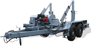 Der ZWV-1200 ist ein unabhängig gefederter Kabeltrommelwagen mit CE-Kennzeichnung und Zulassung für den Schnellverkehr. Dieser Tandemachser bietet eine Tragfähigkeit von 12.000 kg brutto und 9750 kg netto. Der Kabeltrommelwagen ist mit zentralem Hydraulik-Hubsystem ausgestattet. Die niedrigste Achsposition befindet sich in 1400 mm, die höchste in 1900 mm Höhe. Der Kabeltrommelwagen hat eine Gesamtbreite von 2550 mm und eine Innenbreite von 1780 mm. Das Luftdruckbremssystem ist mit Antiblockiersystem (ABS) ausgestattet. Optional kann der Trommelwagen mit Hilfsbügeln mit Zusatzachse für die Aufnahme kleinerer Kabeltrommeln ausgestattet werden. Dieses Modell ist standardmäßig mit einer hydraulischen Umspulmaschine ZW-7 zum Auf- und Abwickeln des Kabels ausgestattet. Der Rahmen kann optional gestrahlt oder metallisiert werden.