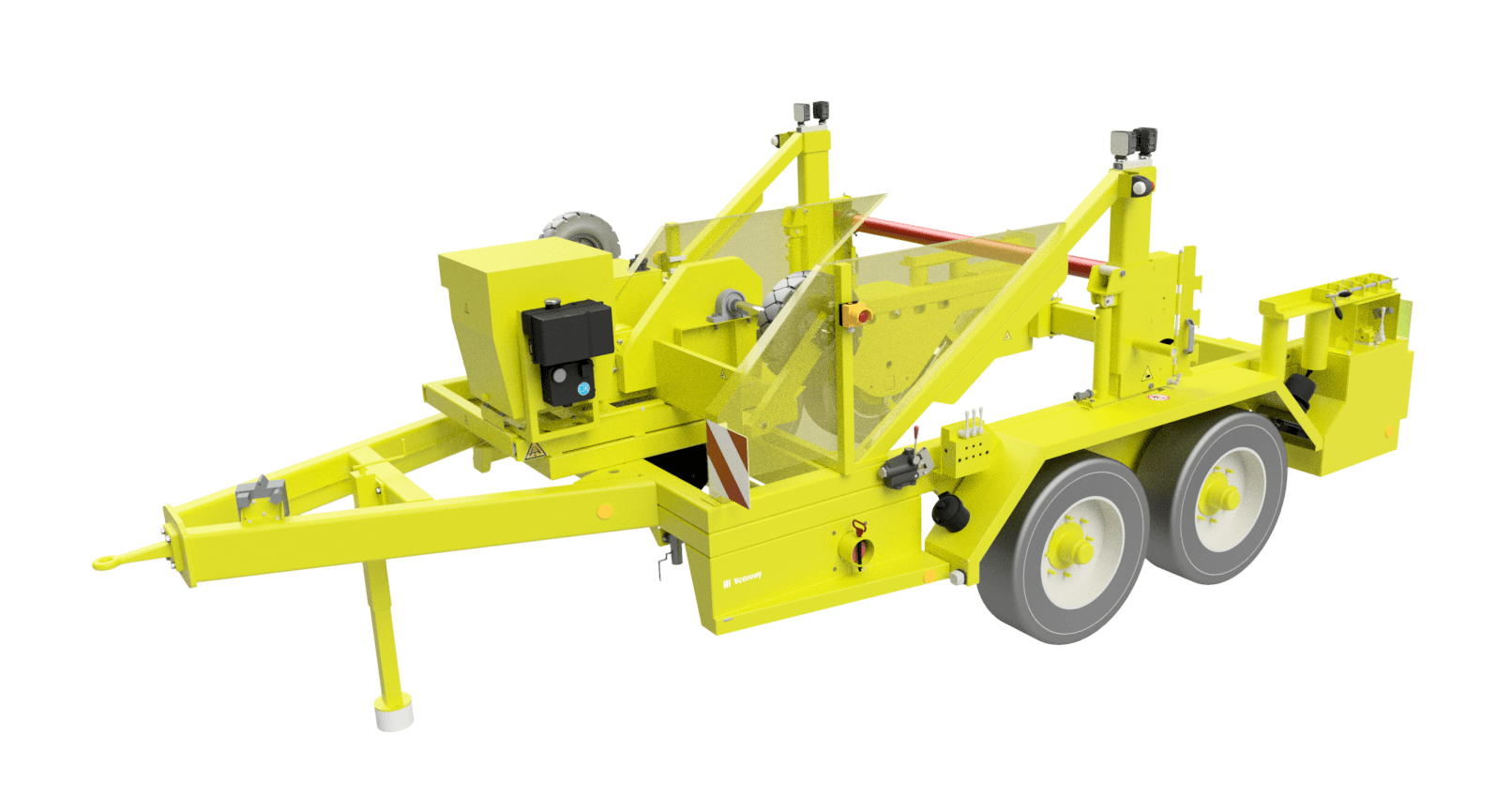 The ZW series comprises three slow-traffic cable drum trailers without suspension and with CE Marking. The net load carrying capacities vary from 5,000 to 8,000 kg. The ZW cable drum trailer has an overrun brake system with handbrake and a central hydraulic lifting system. The lowest insertion point of the axle is 1,050 mm, and the highest is 1,450 mm. The cable drum trailer width is 2,550 mm and the inner width is 1,670 mm. Additional options for the ZW series include wheel chocks, support brackets with an additional shaft for smaller drums and the ZW-7 hydraulic rewinding machine for unwinding and rewinding. It is possible to have the frame blasted or metallised.