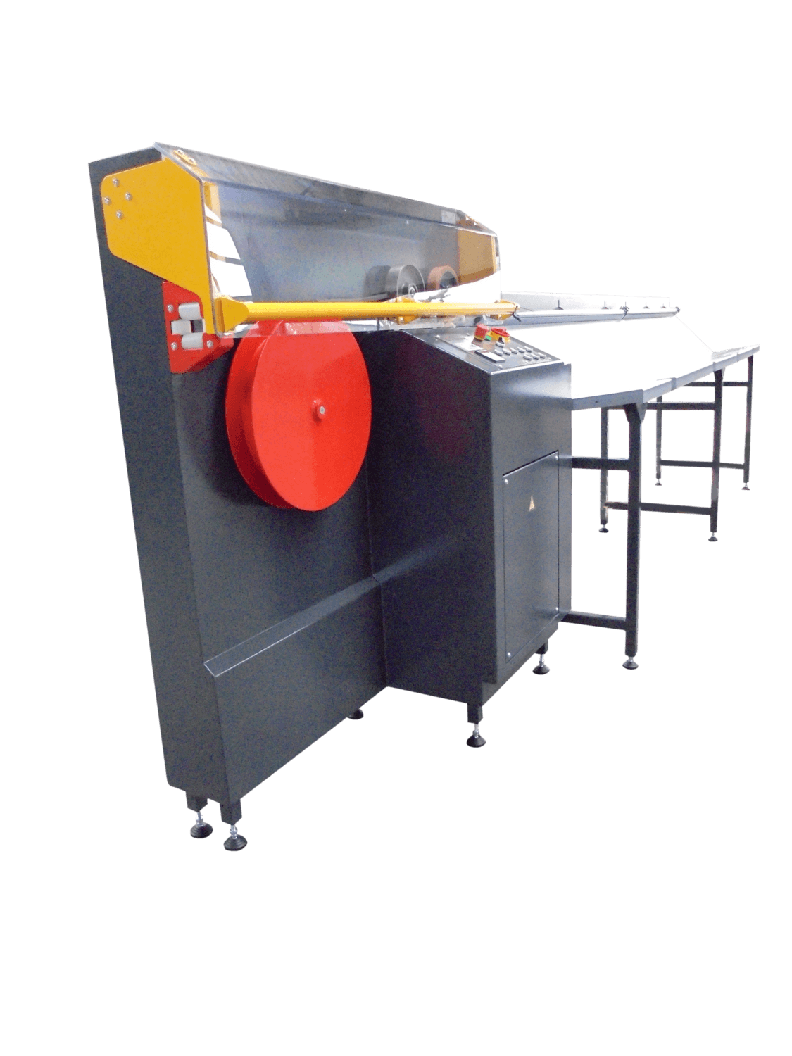 Compact cutting machine comprising measuring device, conveyer, cable cutter, catch table For steel wire up to Ø 20mm (AKS-20) or Ø 30mm (AKS-30) Electrically controlled transport system with variable speed (soft start and soft run-out) Length measuring with calibrated device : Hydraulically controlled cable cutter