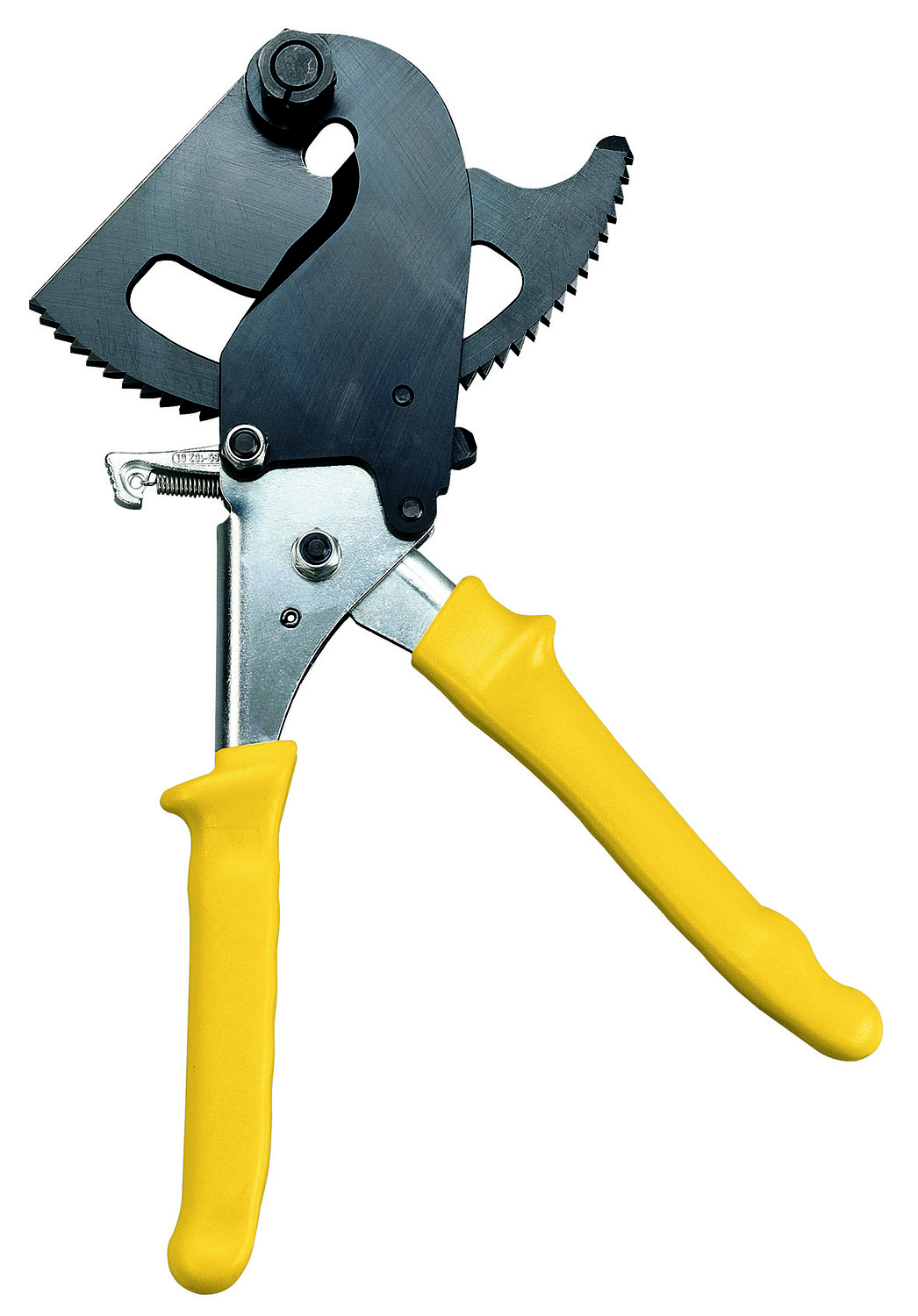 Hand operated cutters, special hardened knifes, all parts exchangeable Cable cutters with ratchet mechanism and pivoting blade.