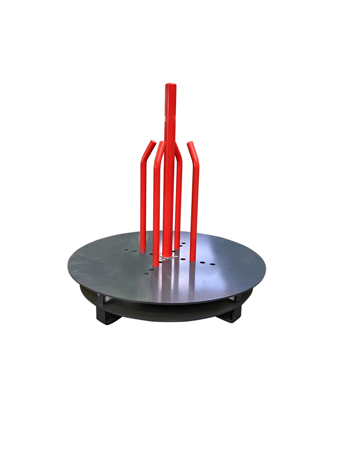 A cable unwinder is for unwinding cable or reels up to a maximum weight of 5,000 kg. The cable unwinders are available in different diameters, each with their own maximum load capacity. A central removable shaft is placed on the cable reel for unwinding reels or four removable pins for laying bunches of cables. The cable unwinder is easy to pick up with the forklift (80 mm free for the forklift forks).