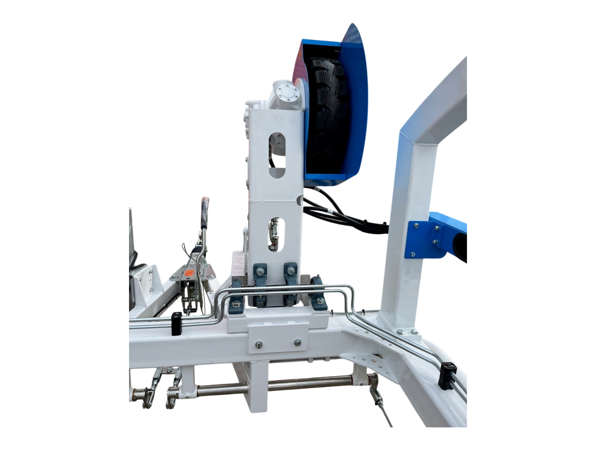 - Standaard side-bars aan de achterzijde en hoge schoren voor extra bescherming en afscherming van de draaiende haspel.