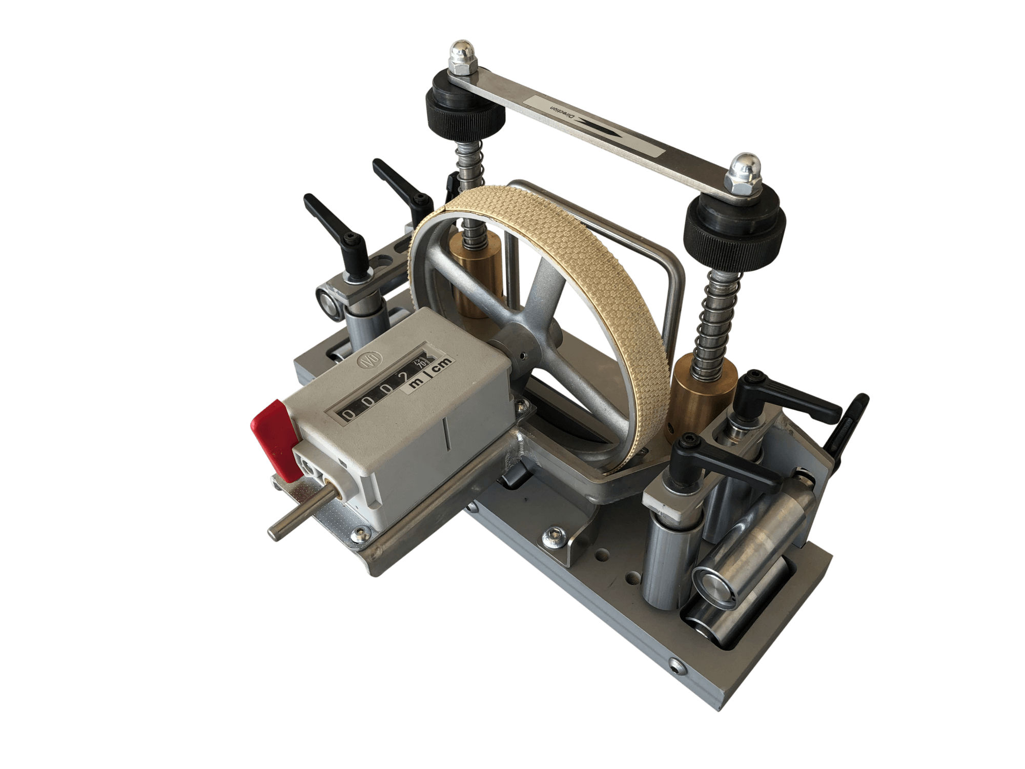De VEN-KL25 is een lengtemeetapparaat speciaal voor het meten van kabel, touw en slang tot een diameter van 25 millimeter. Optioneel kan dit type ook geschikt worden gemaakt voor het meten van staaldraad. Het meetwiel met gekarteld oppervlak zorgt voor een uitstekende grip op de kabel. De gelagerde geleidrollen aan de in- en uitgaande zijde zijn instelbaar. De VEN-KL25 kan optioneel worden gekalibreerd (inclusief kalibratiecertificaat in het Nederlands, Engels en Duits) en kan indien gewenst worden gemonteerd op een vaste of verrijdbare voet.